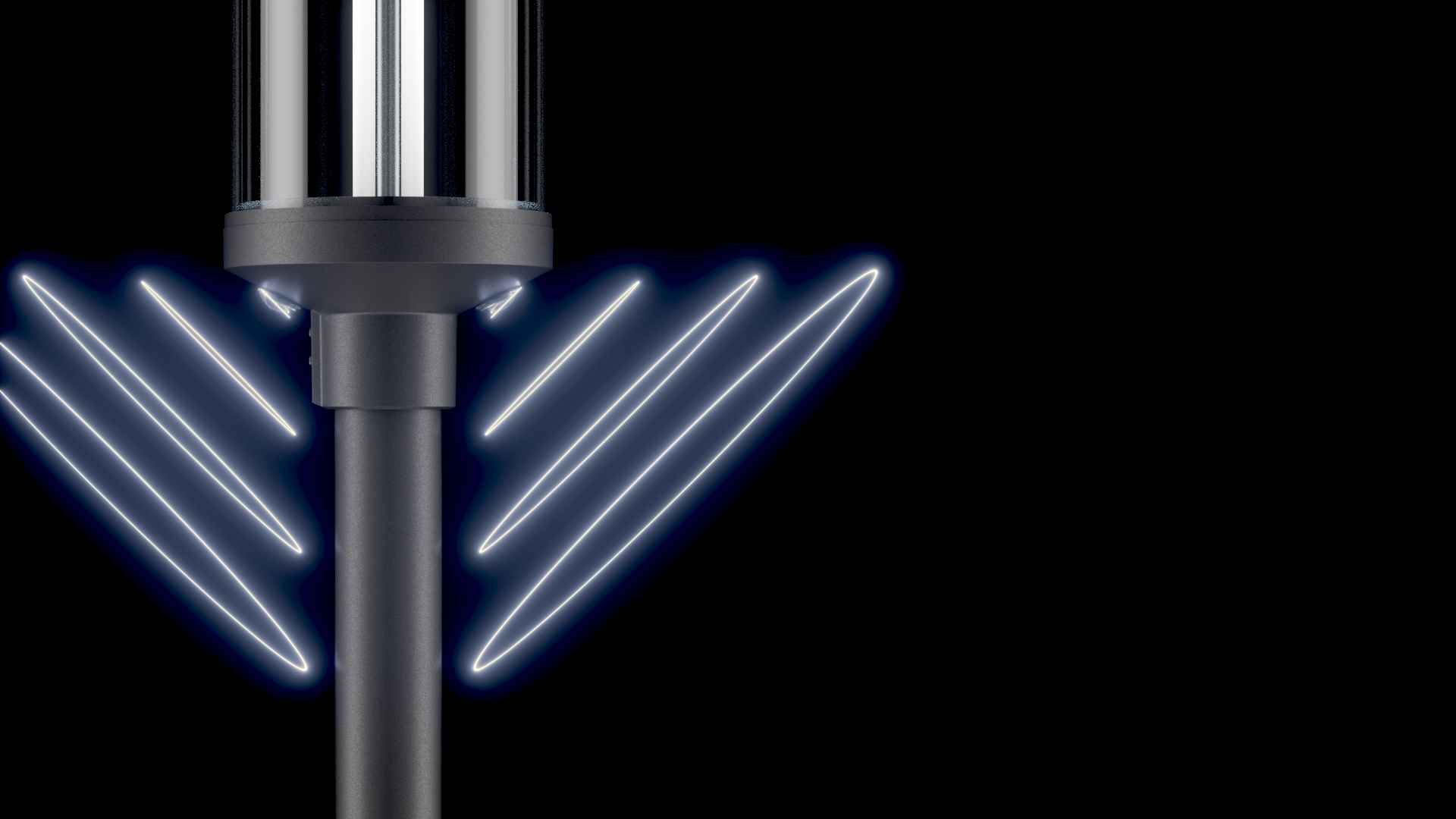 Lichtmanagement ist auch im Außenbereich ein entscheidender Hebel für nachhaltige Beleuchtung. Es spart Energie, senkt CO₂-Emissionen und reduziert die nächtliche Belastung für Mensch und Umwelt. Mit den smarten Varianten der 98 IQ lassen sich Lichtmanagement und Sensorsteuerung komfortabel umsetzen, ohne das klare Design der Leuchte zu beeinträchtigen. Die nahezu unsichtbar im Mastaufsatz integrierte PIR-Sensorik (Passiv-Infrarot) ist systemoffen und kann mit jedem Zhaga D4i-zertifizierten System genutzt werden. Zusätzliche Zhaga-Schnittstellen am Leuchtenkopf erlauben die Vernetzung und smarte Funktionen wie mitlaufendes Licht.