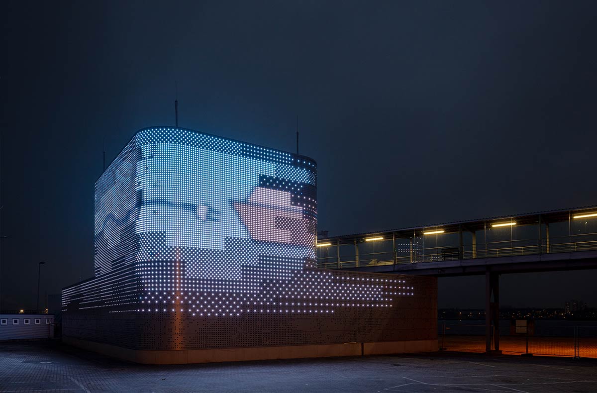 Landstromanlage Port of Kiel (DE) | Architects: BSP Architekten BDA | Media facade: Carl Stahl ARC GmbH; team licht; TRILUX | Photographer: Markus Bollen