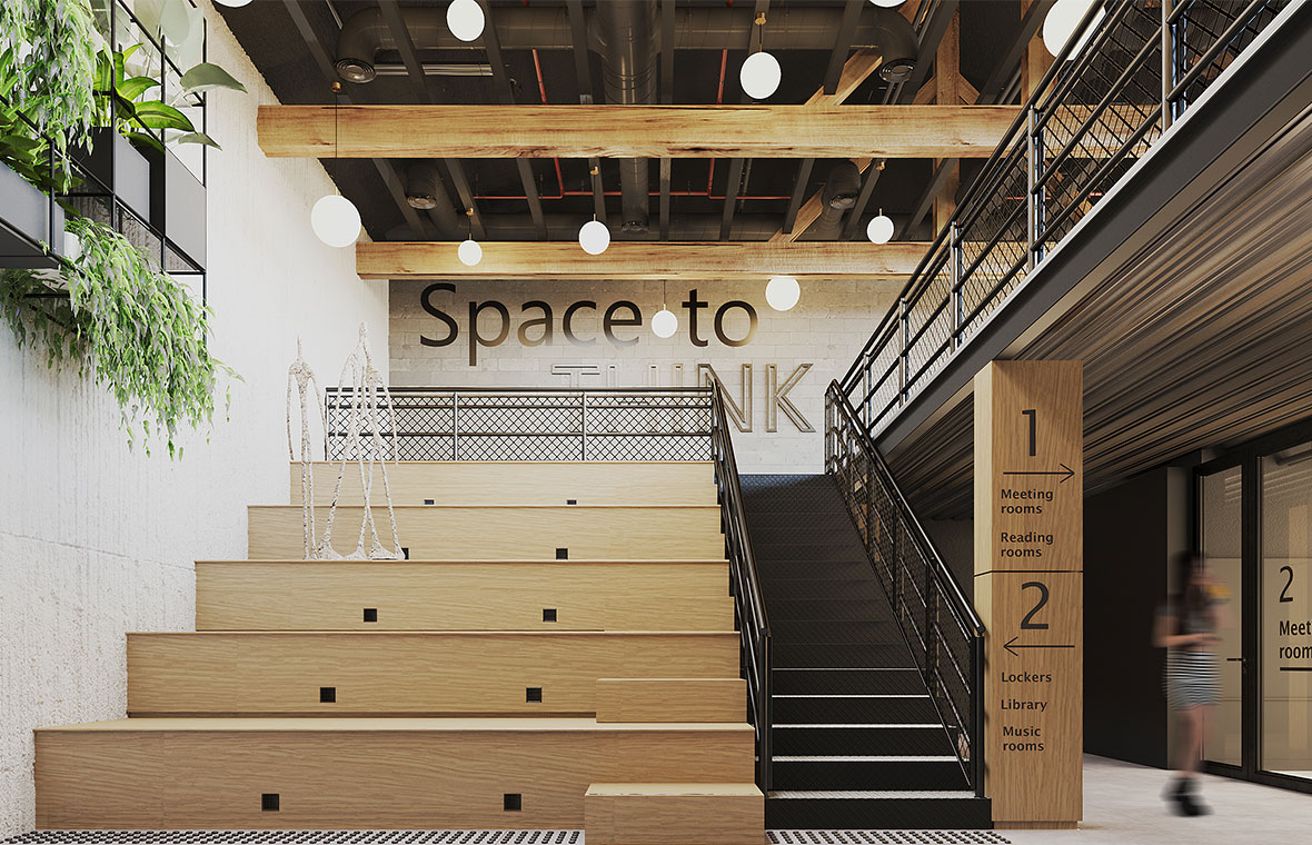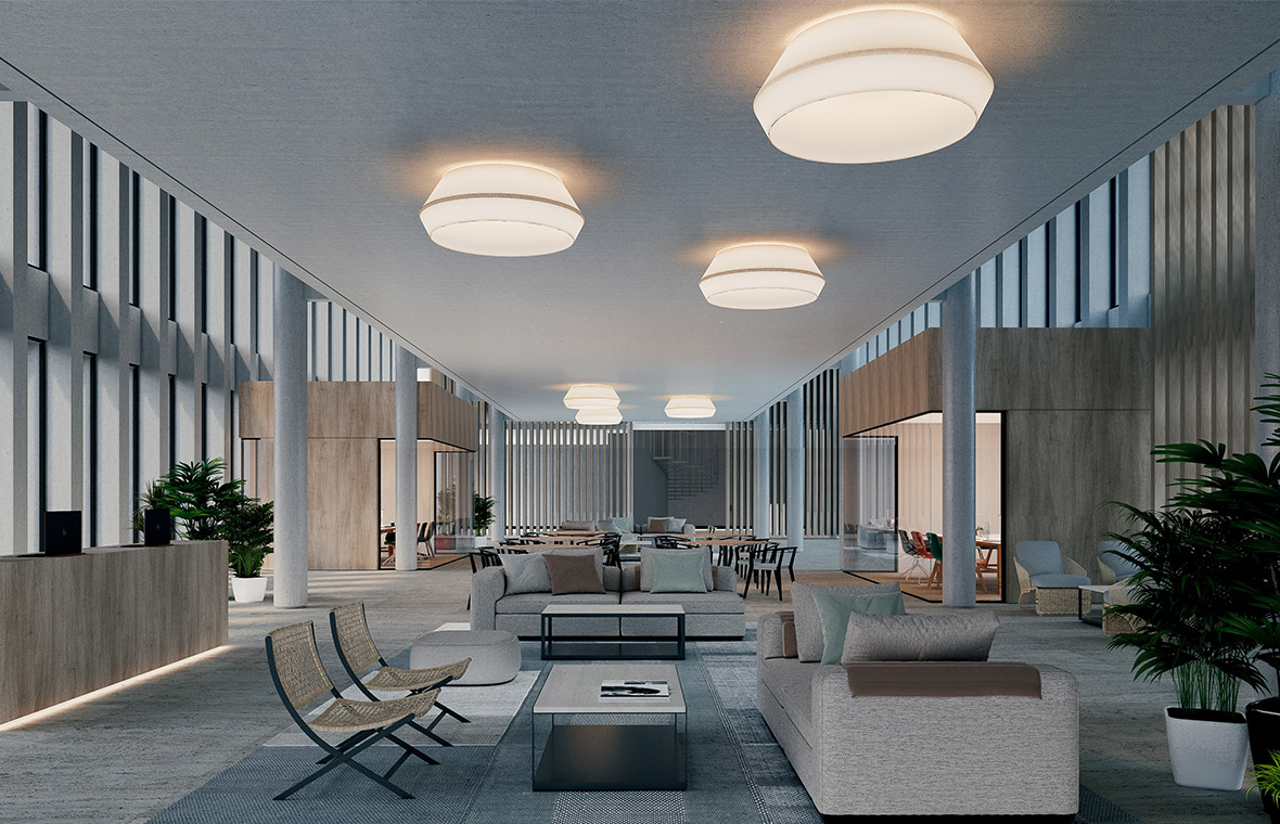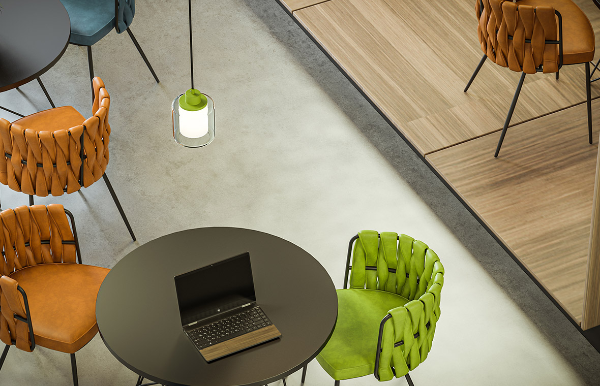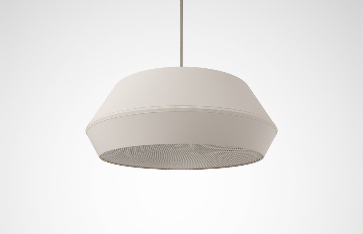 Modern multi-space offices incorporate design impulses from living and hospitality. Lovari surface-mounted and suspended luminaires with their fabric shade in two sizes are a perfect match. The coloured textile surface creates a homely atmosphere and adds a cosy touch to the room.