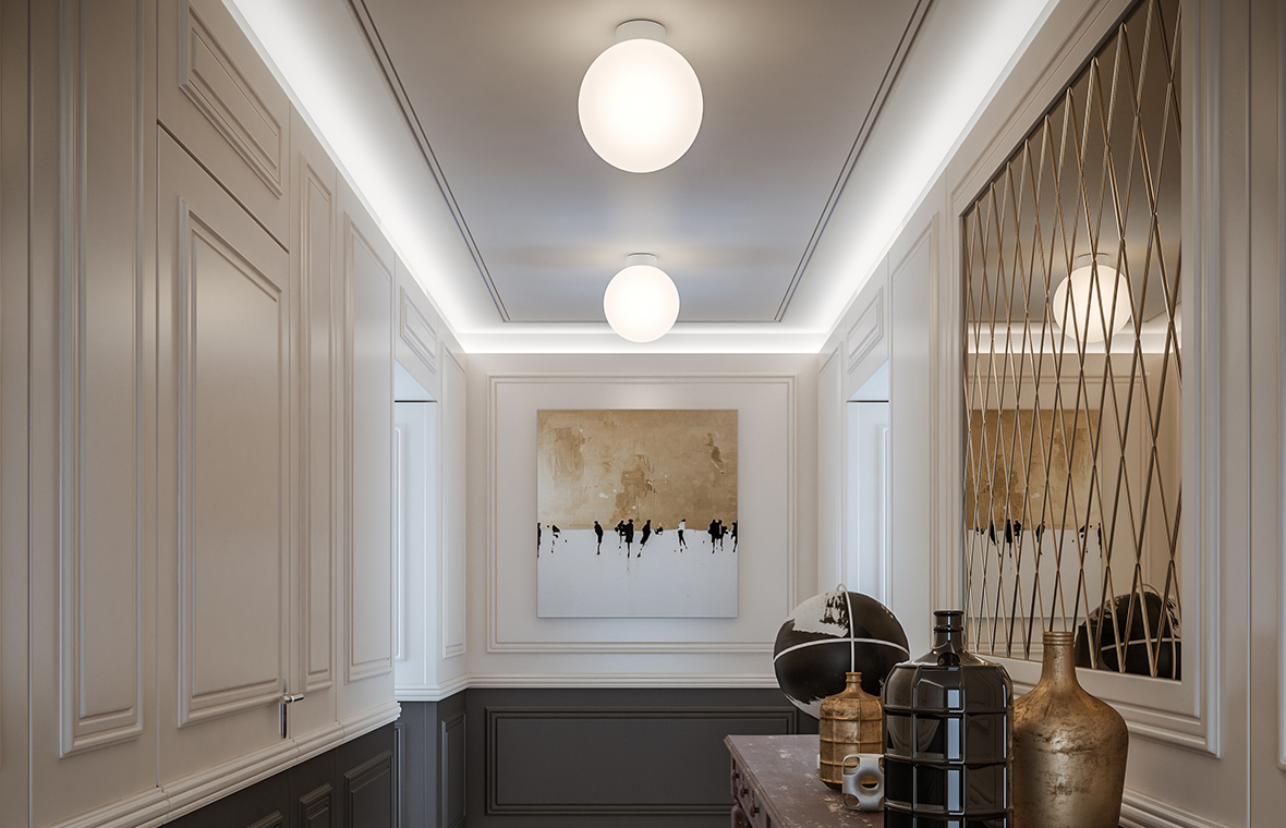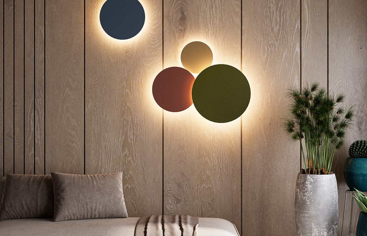 Luminous design accents on ceilings and walls