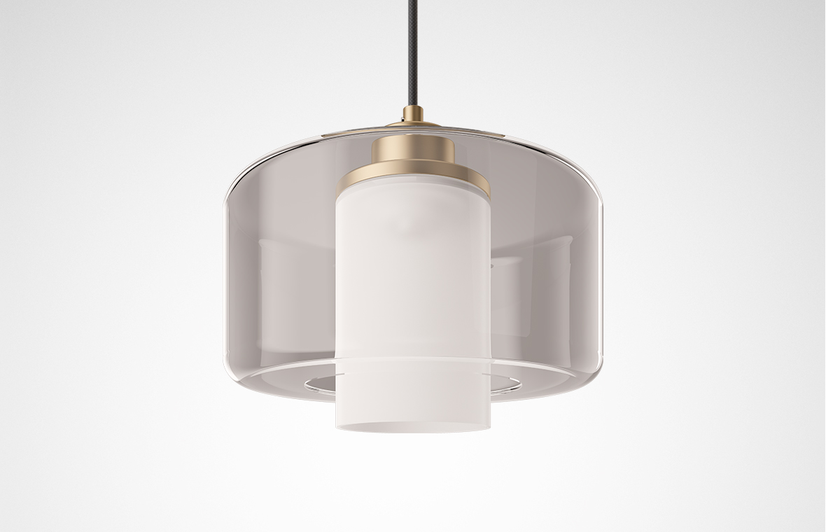 The Lionda family stands for an elegant, timeless shape. A clear outer body made of mouth-blown glass encases the opal inner cylinder - for a high-contrast appearance and a lighting effect with balanced direct and indirect components.