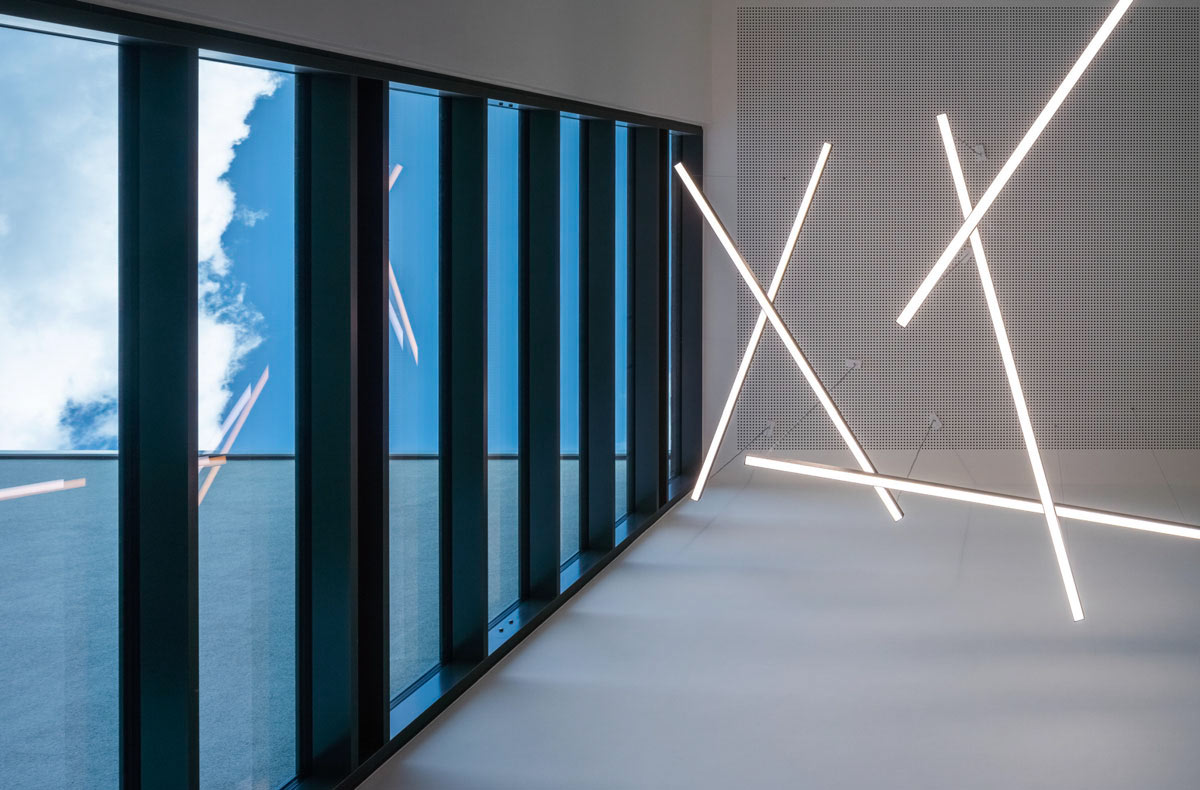 Finea light channels can be easily arranged into creative figures. Decorative, multi-dimensional light objects can thus be created in atria and lit courtyards.