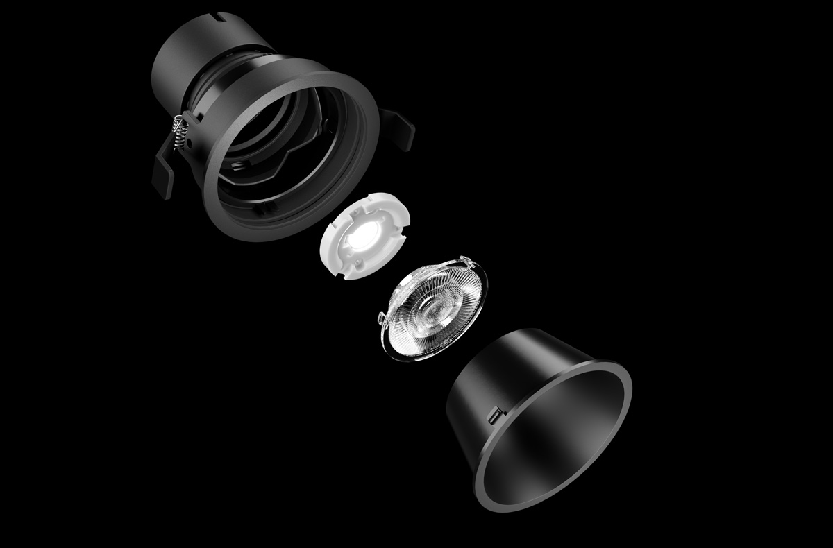 Diverse modular kit with wide selection of sizes, optics, luminous intensities and light colours. Intelligently designed accessories for refurbishment. Excellent quality of light with TRILUX ConVision® technology.
