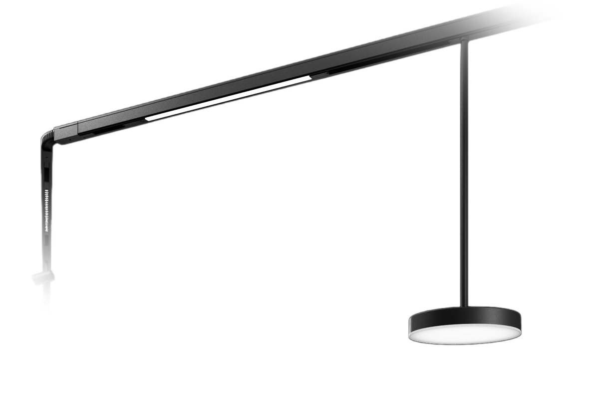 As a 230V track, Rail does not require a separate converter, enables long distances without voltage losses and always has enough power reserve for the higher luminous fluxes in office applications. The profile contains 6 conductors for 3 separately switched luminaire groups and DALI control lines for light management, for example with LiveLink. Alternatively: wireless control with Casambi.