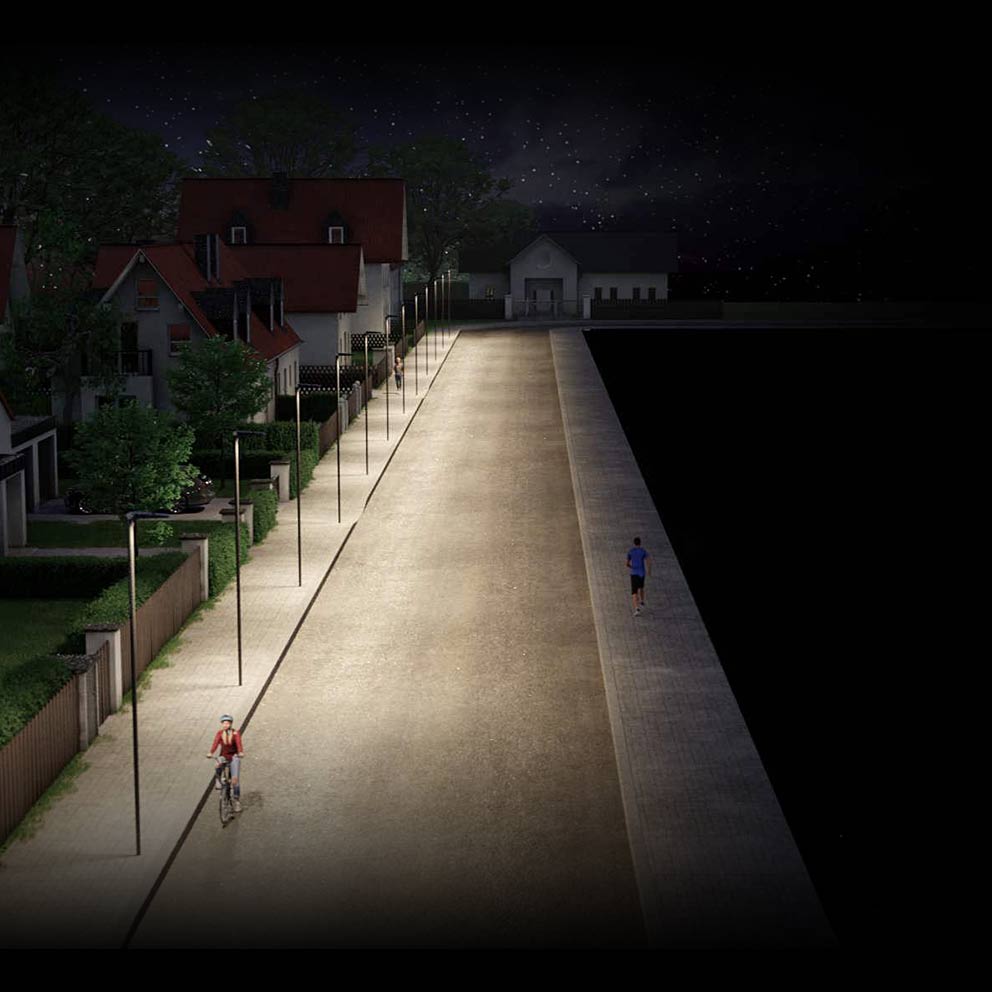 No compromise in terms of optimum contrast vision, efficiency and safety on the one hand and protecting nature on the other – one luminaire for all, flexible even for future changes or new scientific findings.