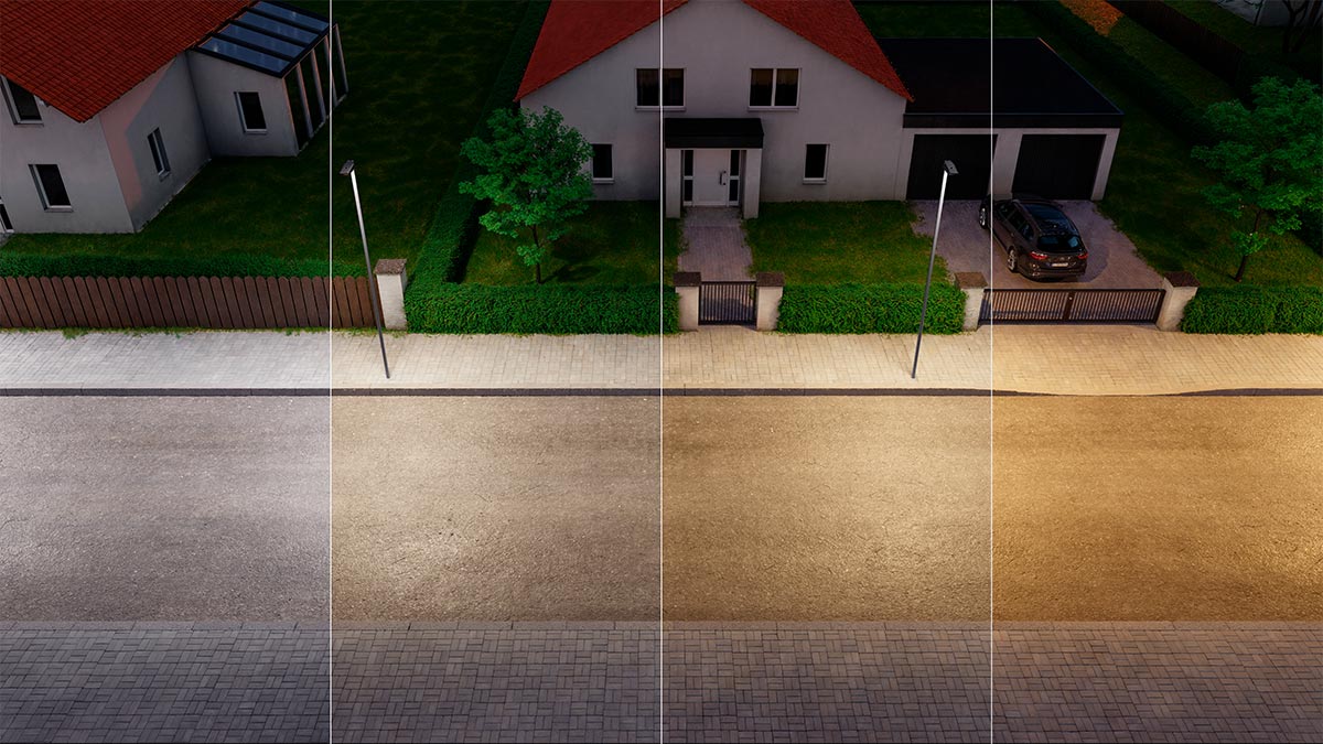 In TRILUX outdoor luminaires, Tunable White technology is modular in the form of 2-channel LED boards, each with two LEDs in 2200K and 4000K, and corresponding 2-channel control gear units. Colour temperature is controlled via the light management system in steps of 2200K, 2700K, 3000K and 4000K. This approach avoids dark spots at the light emission and uniformly utilises all LED modules. The luminaire luminous flux remains constant across all light colours.