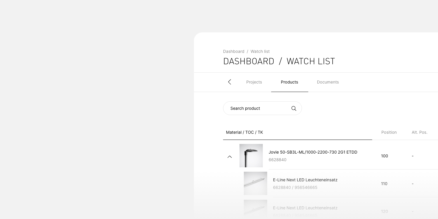 From the first interest to the concrete inquiry: With your watch list, you always have all data at a glance. TRILUX ONE also supports you with data sheets, installation instructions and planning data.