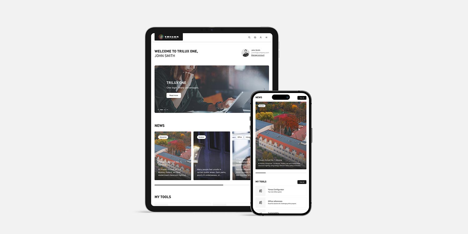 TRILUX ONE is your personal e-business platform. It bundles all important information and supports you in all processes related to your new lighting. From research and planning to ordering and aftersales - with the simply structured platform and many clever tools, you have everything under control in all project phases.