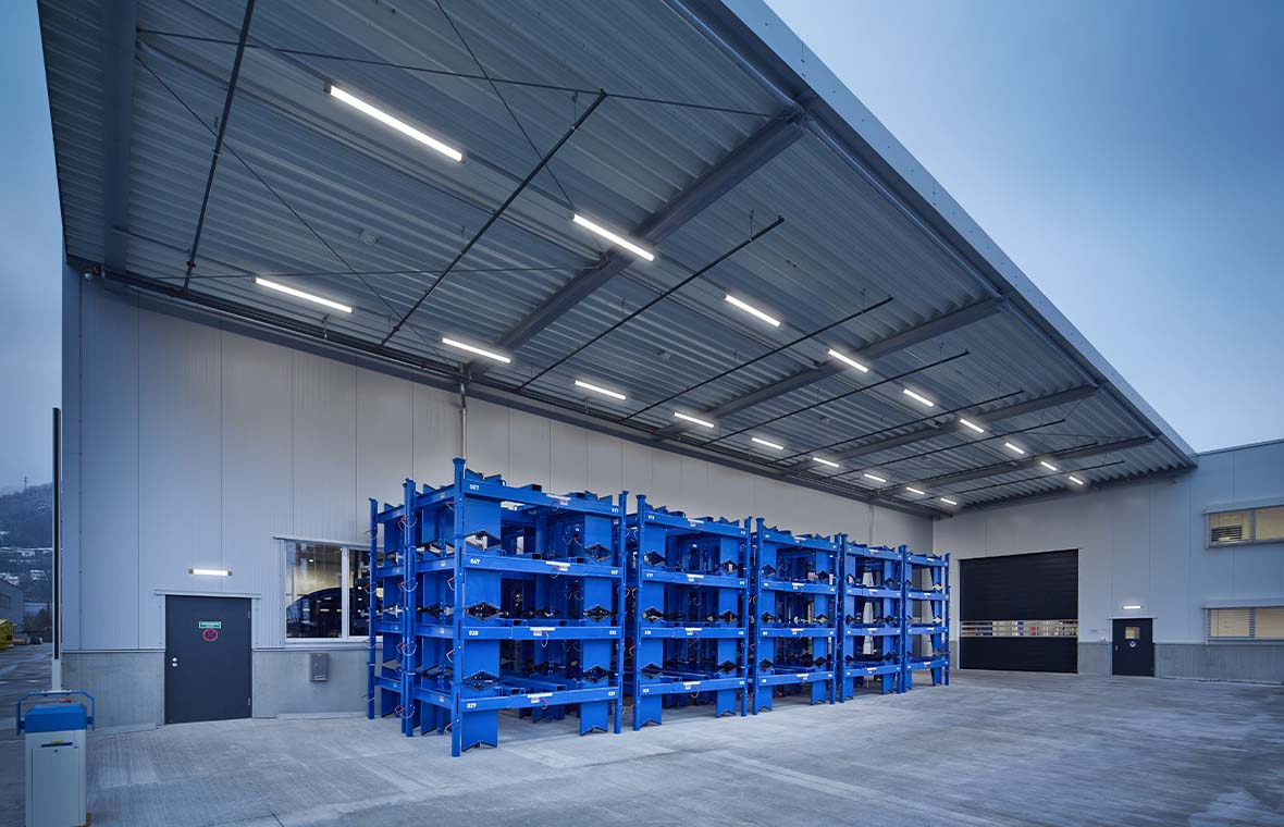 Up to ceiling heights of 6 to 12 metres: with a narrow distribution optic, Tugra is perfect for logistics warehouses with high racks and narrow aisles. Available as a smart version with highbay sensors for running light.
