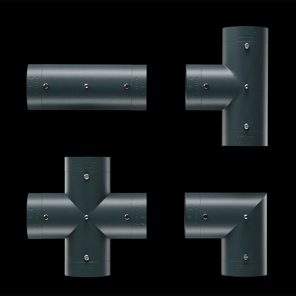 Design connectors: I, L, T and X connectors made of aluminium with matt textured coating